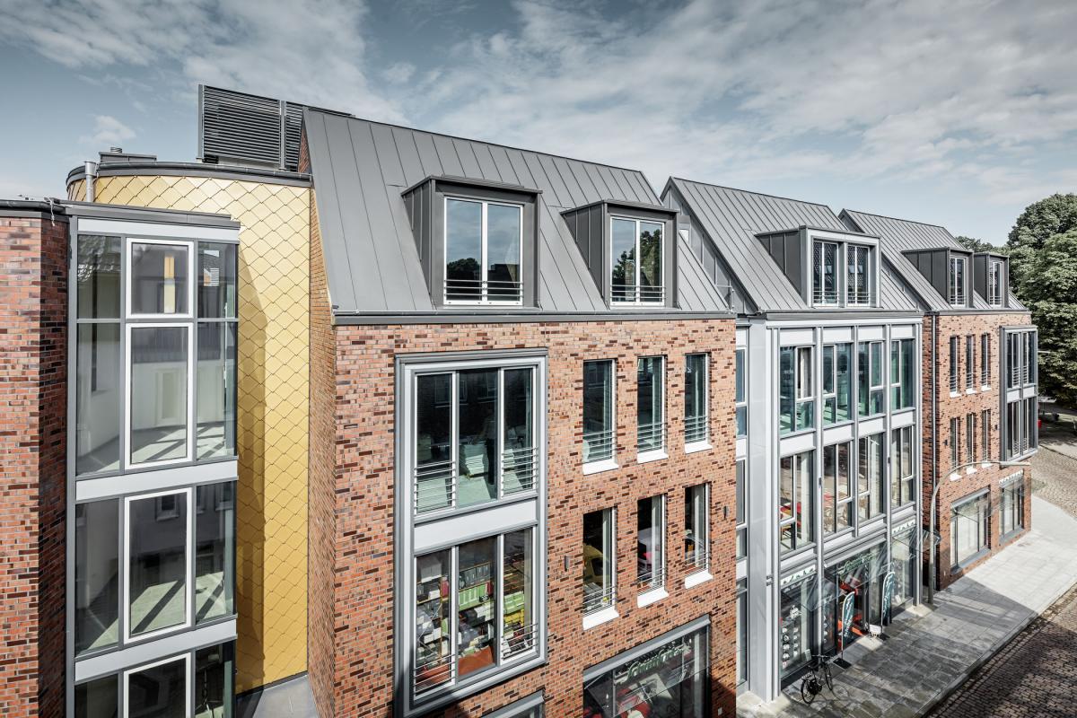 A Hamburghoz közeli Bergedorfban működő, több mint 100 éve cipőkereskedelemmel foglakozó családi vállalkozás új épületének utca felőli főhomlokzata a Hansa városok téglaépítészetének klasszikus interpretációja, míg a hátsó front modern formáit a cipők „kereksége” inspirálta. Az építész Carl Michael Römer arra törekedett, hogy megtalálja azt az építészeti nyelvet, amely megrendelő vállalkozás hagyományait és modernségét egyaránt megmutatja - így került egymás mellé a burkolótégla és a tervező által előszeretettel használt, modern PREFA alumínium homlokzatburkolat.